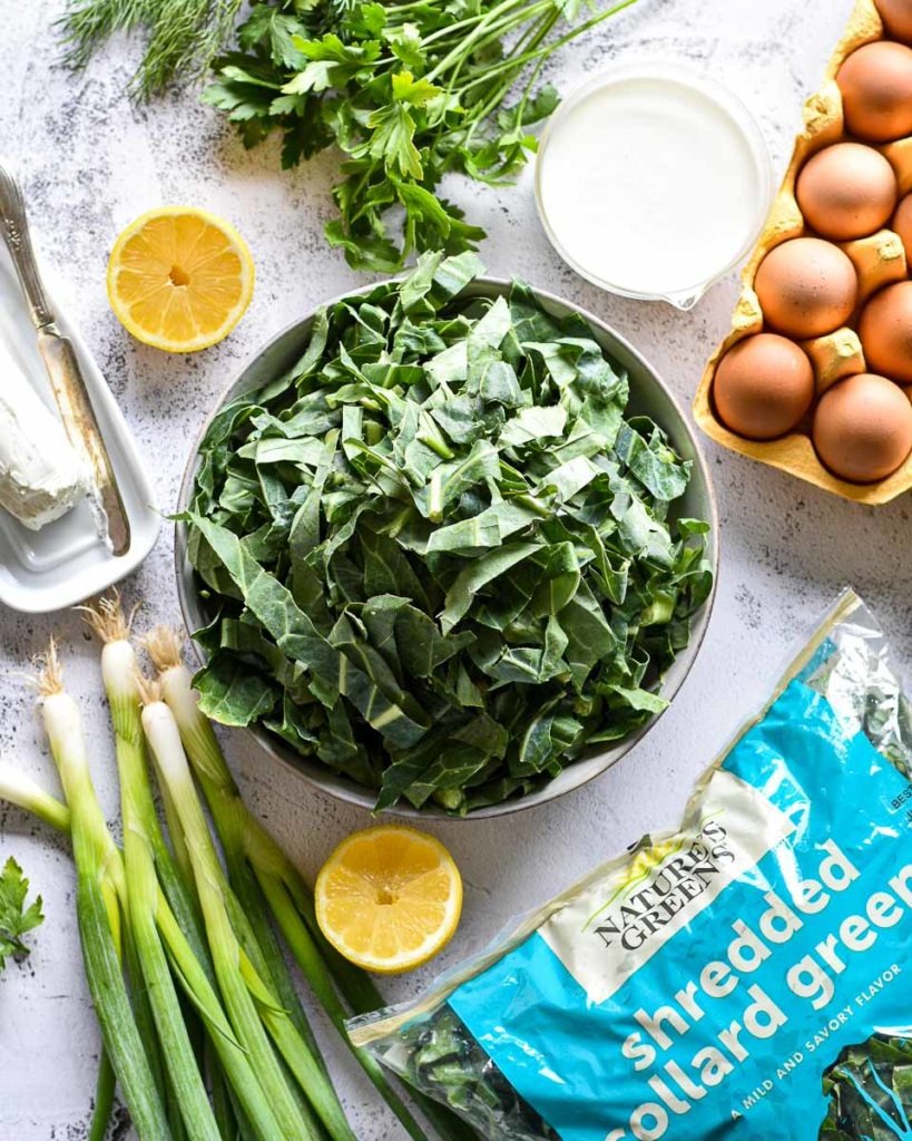 In addition to the earthy flavor of greens, this dish gets its beautiful vibrant color from the mellow onion bite of scallions, grassy parsley, and bright citrusy dill.