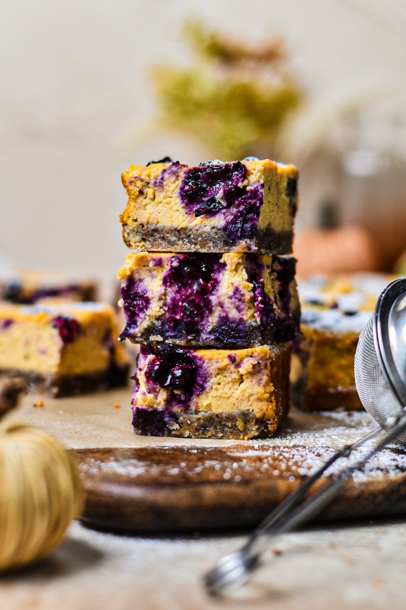 Pumpkin blueberry cheesecake bars