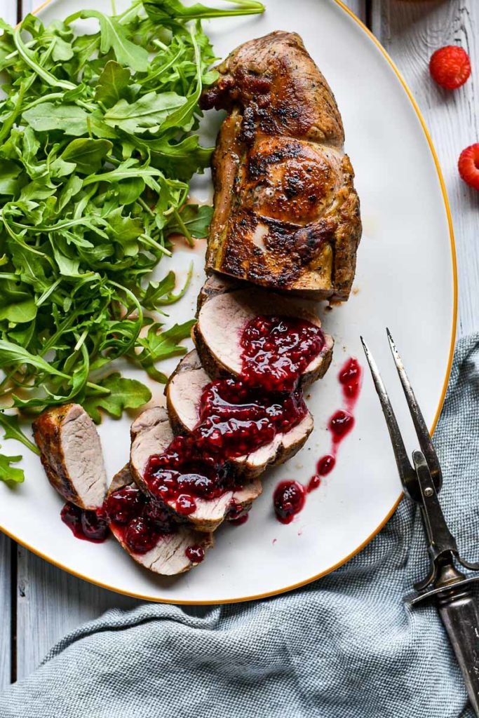 Easy Roasted Pork Tenderloin with Raspberry Jalapeno Sauce